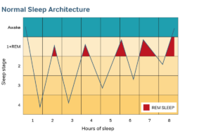 Sleep is divided into two distinct states — Rapid Eye Movement (REM) sleep and non-REM which is further divided into 4 stages: Stage 1 (drowsiness), Stage 2 (light sleep), and Stages 3 & 4 (deep sleep). Deep sleep is often referred to as slow-wave sleep (SWS). These stages of sleep alternate in 70 – 90 minute cycles and in an average night, sleep will move through 4 to 5 cycles. See Figure 1.