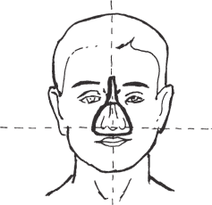 Mould to a triangular shape and place onto the face as shown in diagram 3 with enough pressure to mould the silicone to the face but not enough to squash through the silicone (preferred thickness approximately 4 mm). Fit the mask to the patient making sure the mask is vertical in all planes